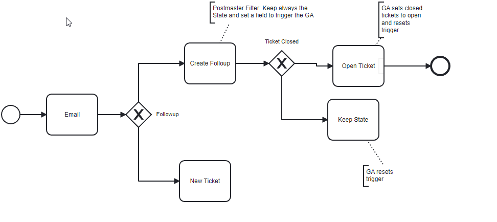 In this case, we will discuss keeping the state of any ticket unless the ticket is closed. The challenge here is that the postmaster filter needs to be made aware of the state of the ticket. Now, you could write a postmaster post filter, but you can also configure it as a regular postmaster filter.