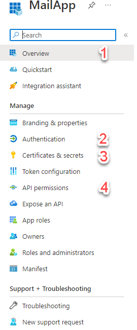 Click Application permissions. Select Mail > Mail.ReadWrite and Mail.Send. The result is the following: