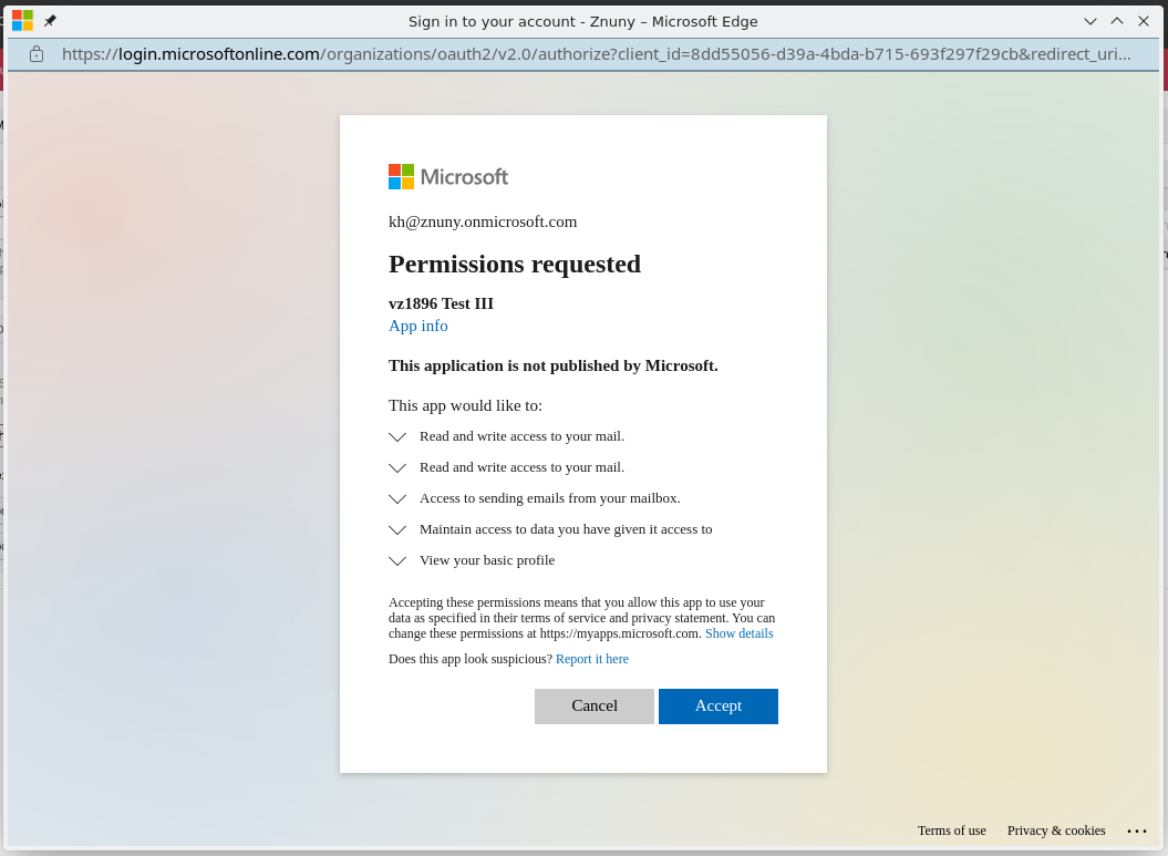 We have added an explanation of the required steps to configure modern authentication, aka OAuth 2.0, for your Microsoft Office365 mailboxes. This includes the app registration in the Azure Portal and also the token configuration in Znuny.