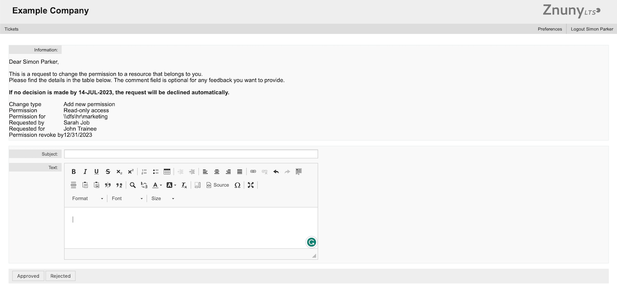 The TicketApproval functionality prepares you for nearly every scenario where an approval step is required.