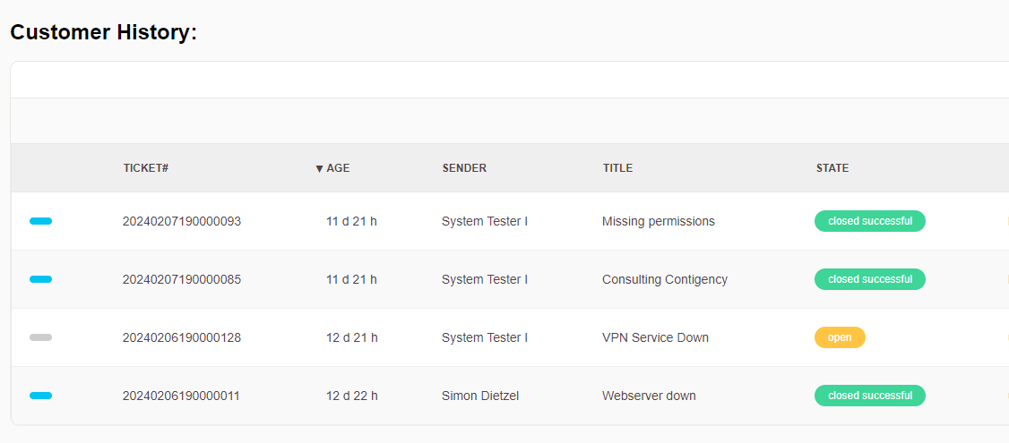 They provide quick insights into the status of all requests, current and past. A quick search in the search toolbar gives the agent, supervisor, or key account managers access to the entire list of registered customer users for any company or individual user. You can add new customer users or quickly create a ticket for a registered user. During a callback, in an open issue, it's always an excellent option to call up the customer user information center. You can efficiently address and update other requests. This speedy retrieval of information and the ability to add notes to requests lends agency to your servicing agent to improve customer relations, especially in an escalation call.
