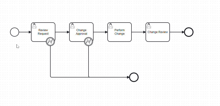 Needs Approval→ goes to Change ApprovalReject Request→ goes to EndApproved→ goes to Perform ChangeRejected→ goes to End
